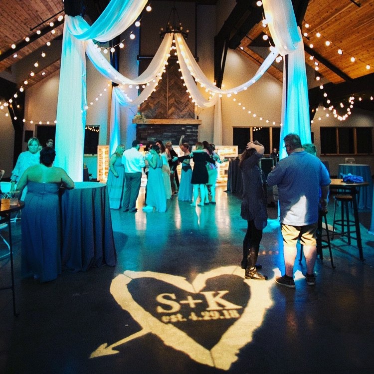Elevate your event with a Custom Gobo Design that creates a personalized and polished look, setting the perfect tone for your special day or brand celebration!